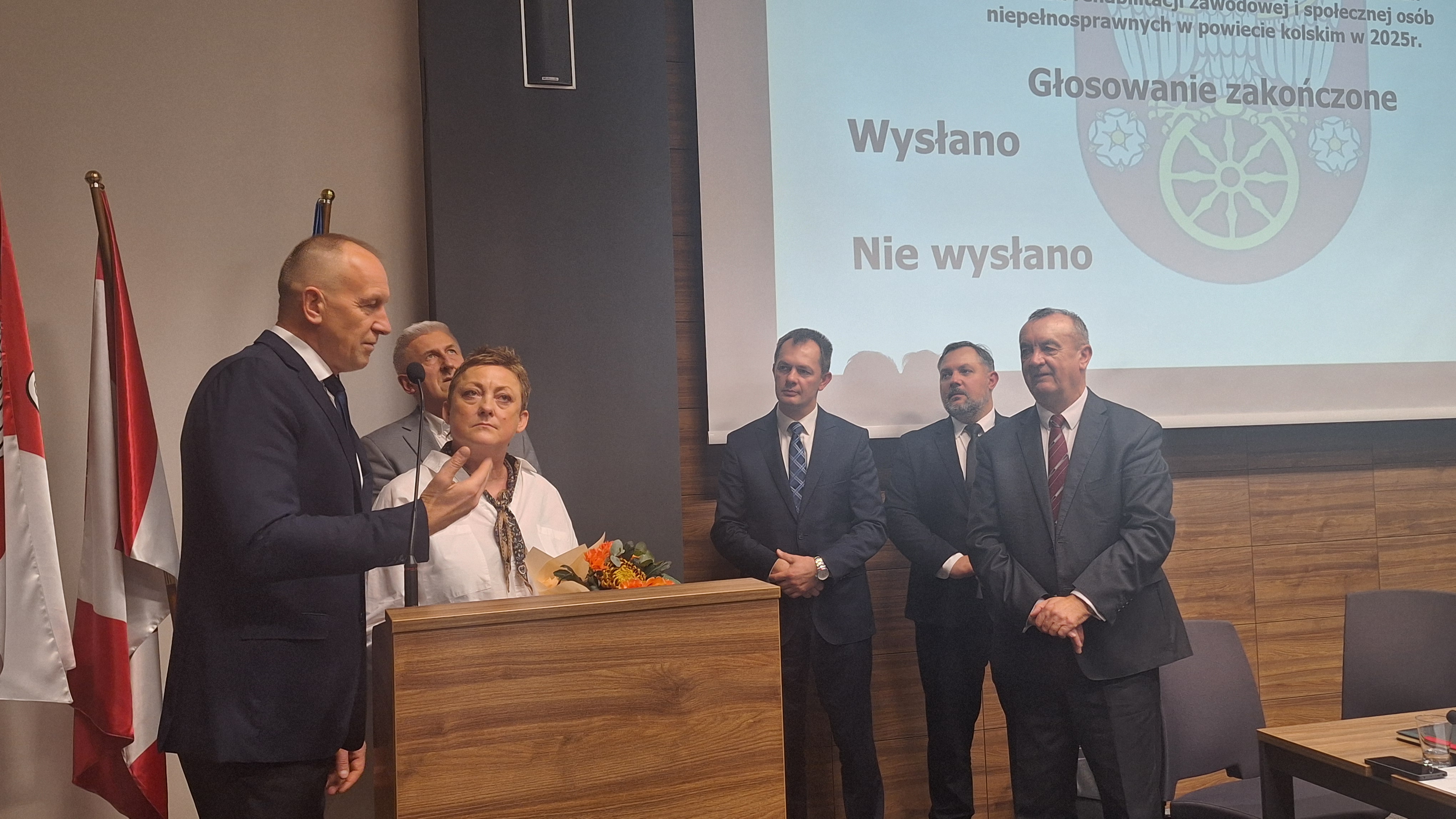Starosta Kolski Robert Kropidłowski w imieniu całej Rady Powiatu Kolskiego podziękował Pani Elżbiecie za współpracę z Powiatowe Centrum Pomocy Rodzinie w Kole, za Jej ogromne zaangażowanie i dobre serce, które przez te lata dało miłość, ciepło i bezpieczeństwo 114 dzieciom. Podkreślił, że żadne działania Powiatu Kolskiego nie dały tyle dobra co otwarcie swojego serca i domu pełnego ciepła przez Państwa Sudolskich dla dzieci, które los pozbawił rodzinnego domu.