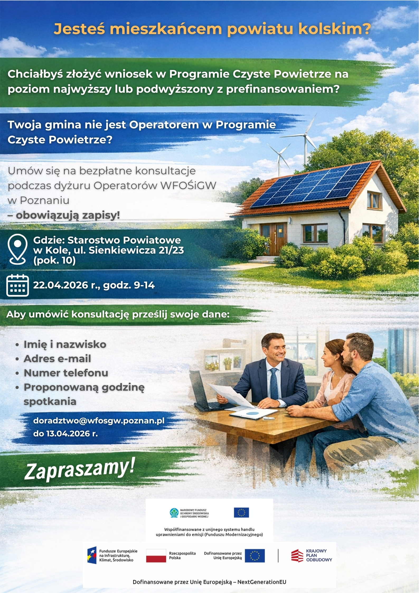 Zapraszamy na bezpłatne konsultacje z Operatorami Programu Czyste Powietrze WFOŚiGW w Poznaniu.