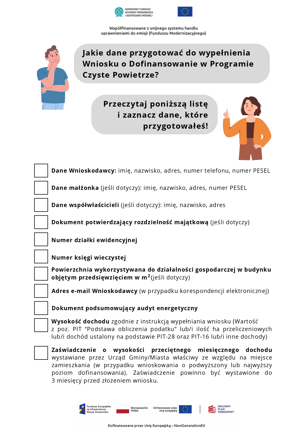 Zgłoś się już dziś i sprawdź jakie informacje są niezbędne do złożenia wniosku à skorzystaj z załączonej checklisty.