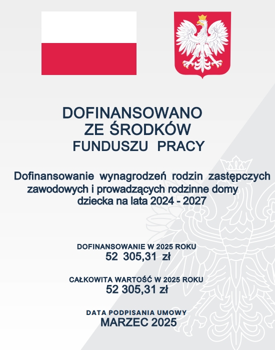 Powiat Kolski przystąpił do realizacji w 2025 roku rządowego programu „Dofinansowanie wynagrodzeń rodzin zastępczych zawodowych i prowadzących rodzinne domy dziecka na lata 2024-2027” ustanowionego Uchwałą Nr 61 Rady Ministrów z dnia 19 czerwca 2024 r. finansowanego ze środków Funduszu Pracy.