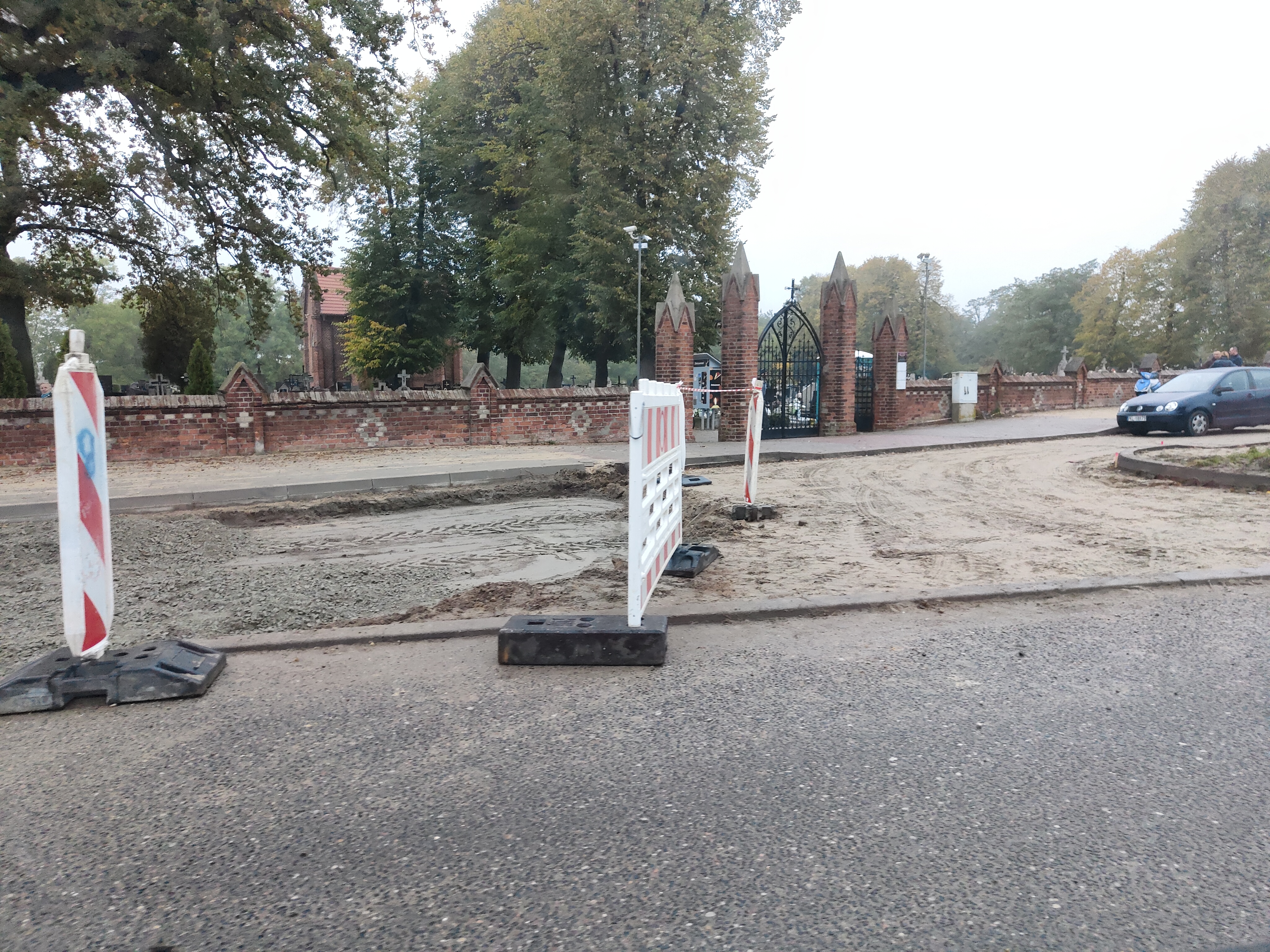 Projektuje się wykonanie poboczy z kruszywa łamanego 0/31,5 mm stabilizowanego mechanicznie gr. 10 cm i szer. 1,0 m. Przewiduje się przebudowę istniejących zjazdów indywidualnych i publicznych. Nawierzchnia zjazdów w ciągu chodnika zostanie wykonana z kostki brukowej betonowej gr. 8 cm, bądź betonu asfaltowego- zgodnie z PZT. Nawierzchnia zjazdów do pól uprawnych zostanie wykonana z betonu asfaltowego. Projektuje się wykonanie zatoki na 26 miejsc parkingowych przy cmentarzu. Szerokość zatoki 4,5 m, miejsca usytuowane pod kątem 60° w stosunku do krawędzi jezdni. Poprawiony zostanie system odprowadzenia wód opadowych i roztopowych z korony drogi poprzez nadanie odpowiednich spadków podłużnych i poprzecznych- odwodnienie do istniejących rowów przydrożnych oraz poprzez projektowane wpusty uliczne. Rowy przydrożne zostaną dodatkowo odmulone i oczyszczone, a w obrębie istniejących przepustów oraz wylotów z przykanalików umocnione płytami ażurowymi. Przekraczanie jezdni przez pieszych zostanie ułatwione, poprzez wyznaczenie przejść dla pieszych w miejscach dogodnych, zarówno z punktu widzenia ergonomii ruchu pieszego, jak i bezpieczeństwa ruchu drogowego.