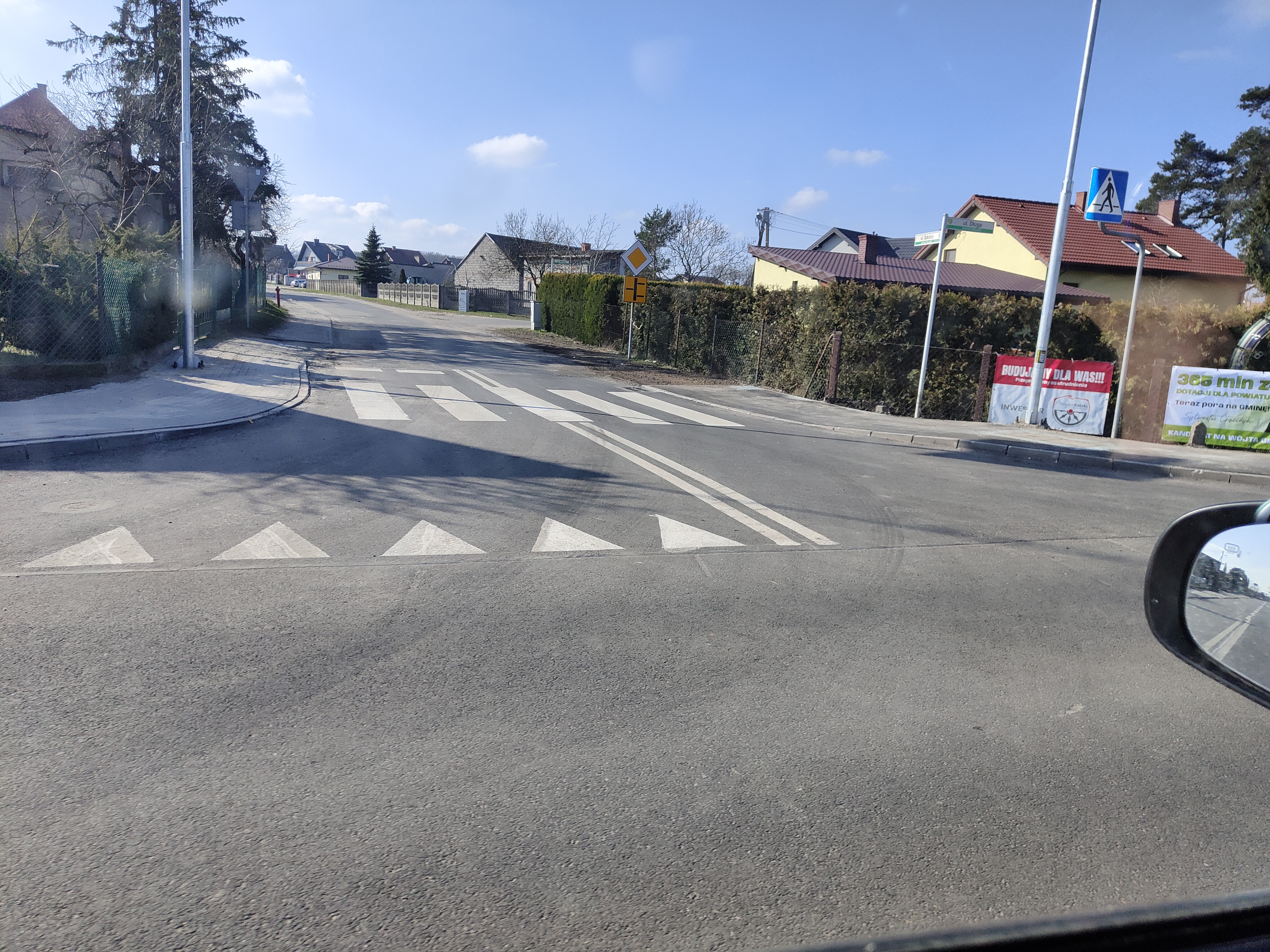 Wykonane zostanie nowe oznakowanie poziome i pionowe zgodnie z zatwierdzonym projektem stałej organizacji ruchu. Dla zwiększenia bezpieczeństwa ruchu na drodze, zaprojektowano solarne doświetlenie przejść dla pieszych z aktywnymi znakami D-6.